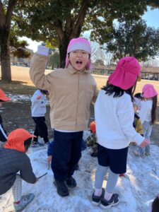 先日の雪には子どもたちも大喜び!公園での雪遊びをたっぷりと楽しみました♪