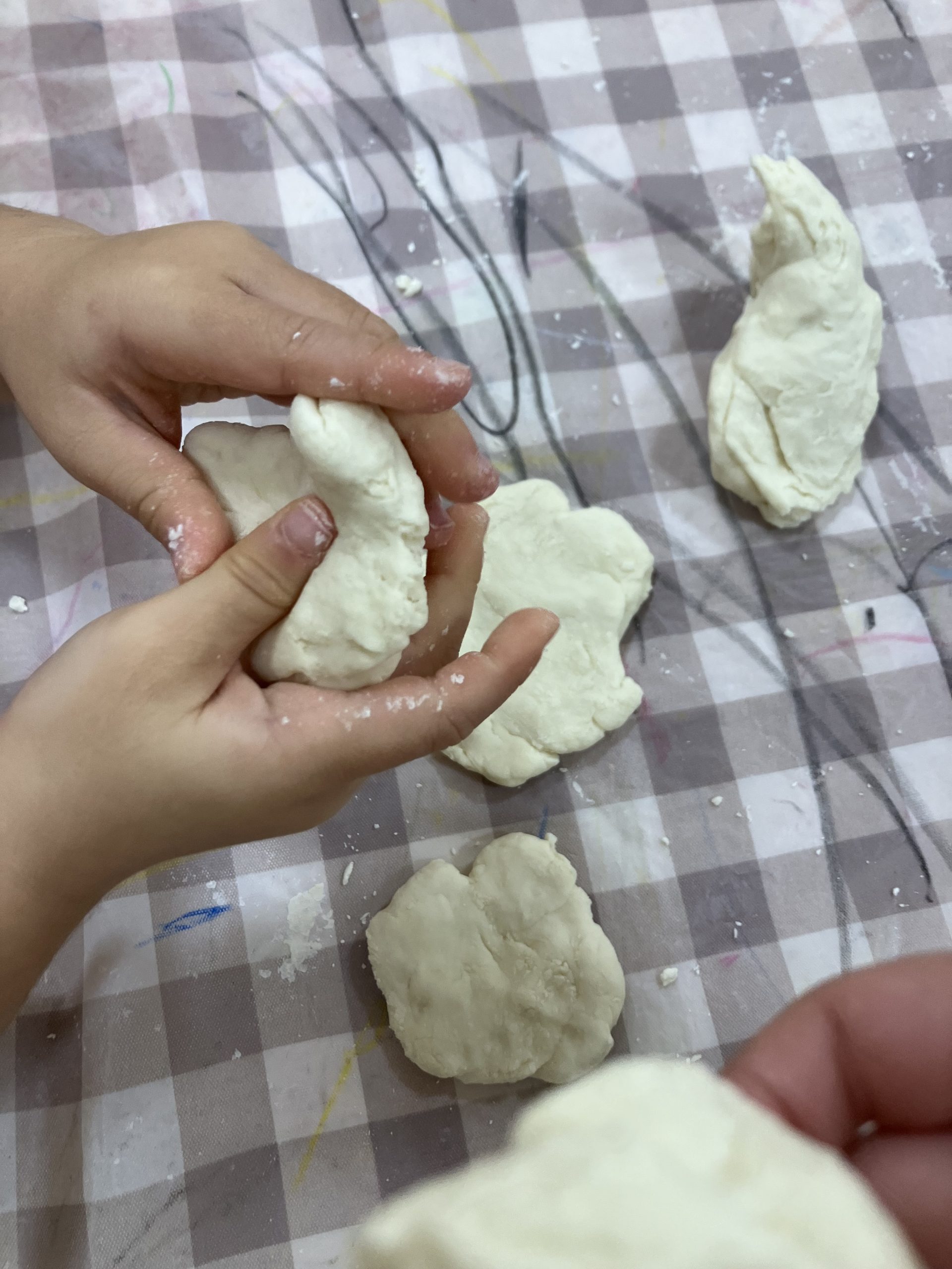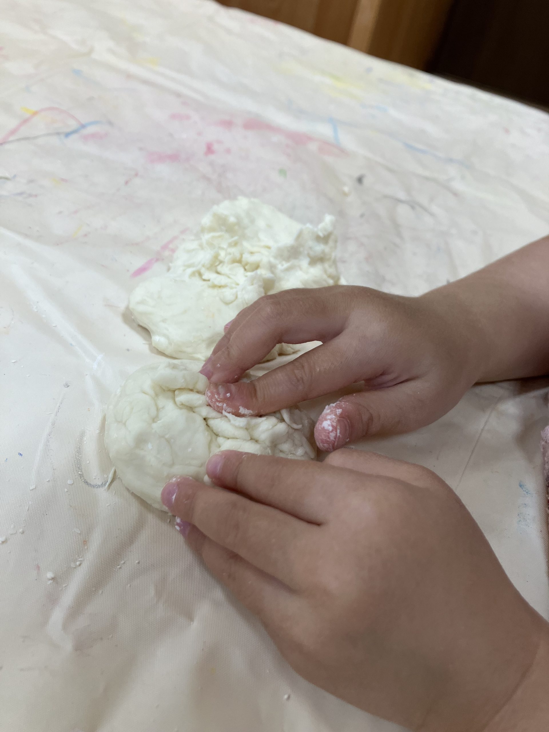 子ども達に十五夜の説明をし、どんなお月様にしたいか聞いたところ『大きいのが作りたい!』『光っているのがいい!』『お月様には実はうさぎがいるんだよ』などの声が・・。