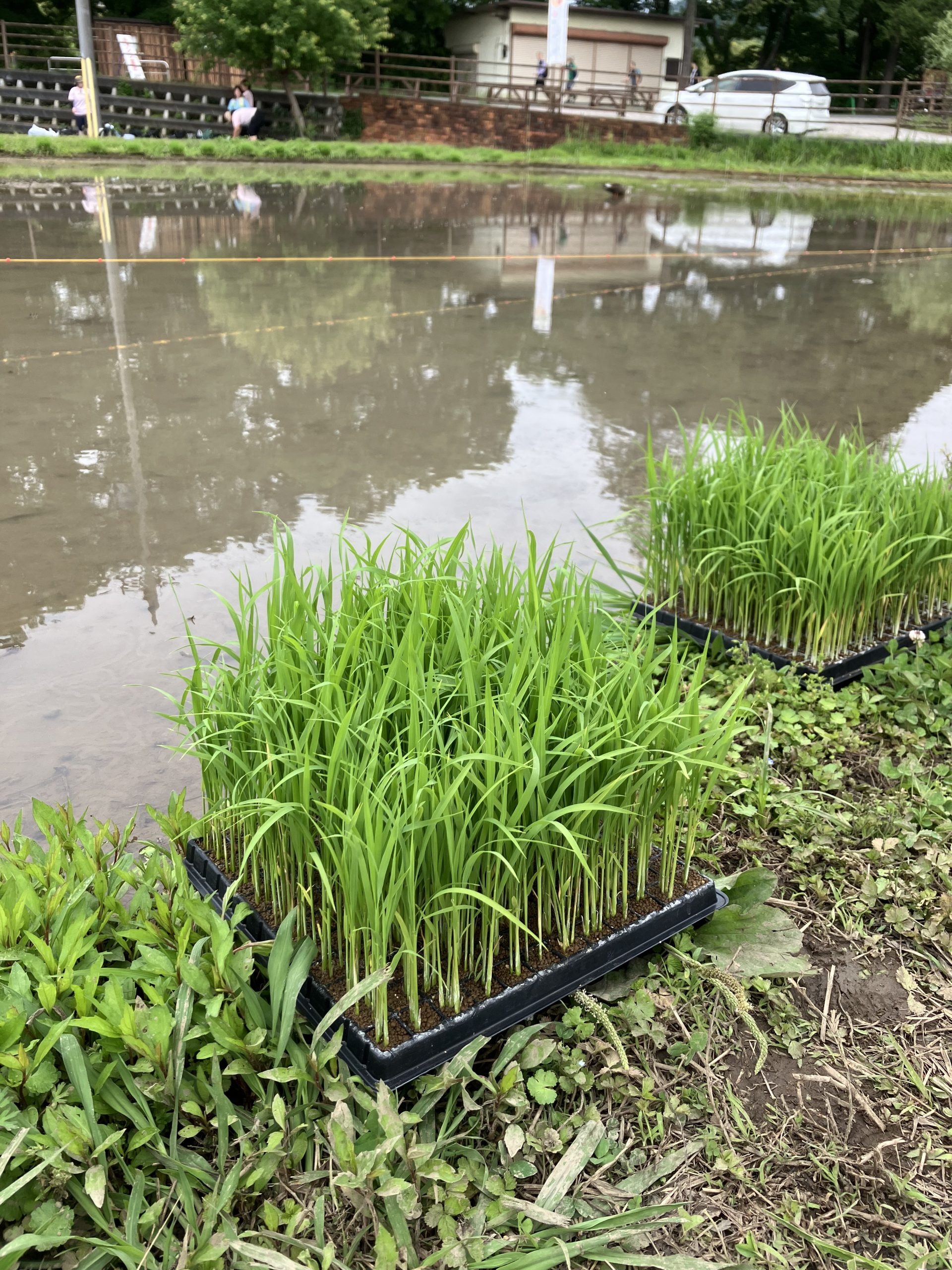 先日、4,5歳のクラスの希望者で田植え体験に行ってきました☆
