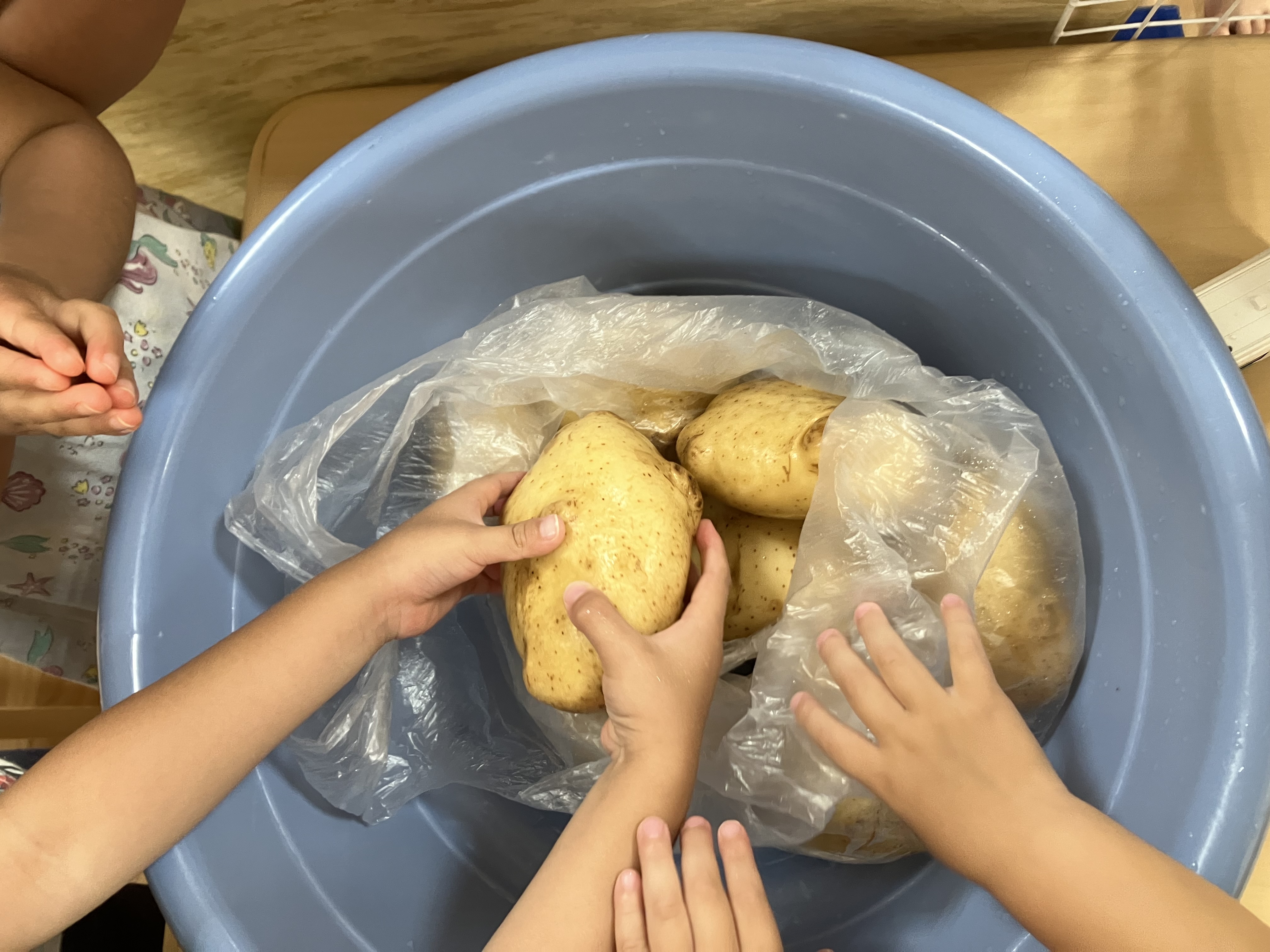 暑い中頑張って掘ったお芋、お家で早速食べた子もいるようで、休み明けに嬉しそうにおしえてくれました!貴重な体験になったようです♪