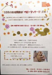 また、園見学会後に行う地域開放は、クオーレ職員による『ベビーマッサージ』です!