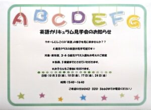 ☆英語カリキュラム見学会のお知らせ☆